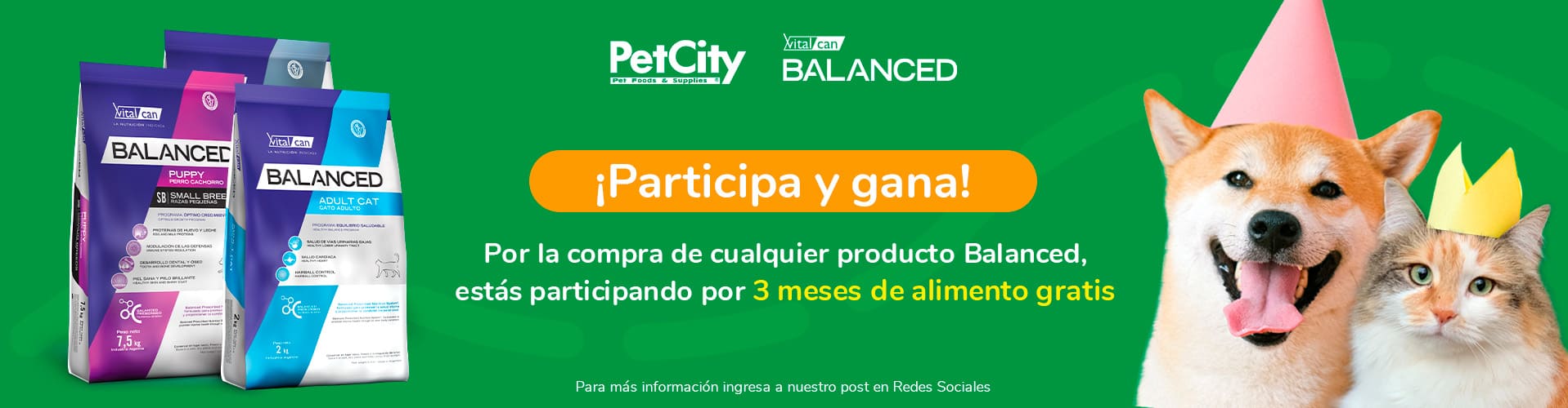 El Primer Ganador recibirá, como premio (el “Premio”), 3 meses de alimento Gratis para una mascota de la línea [Balanced] de Vitalcan. El Ganador no podrá́ exigir el canje, reemplazo o sustitución del Premio, ya sea por dinero o por cualquier otro bien o servicio distinto del ofrecido.