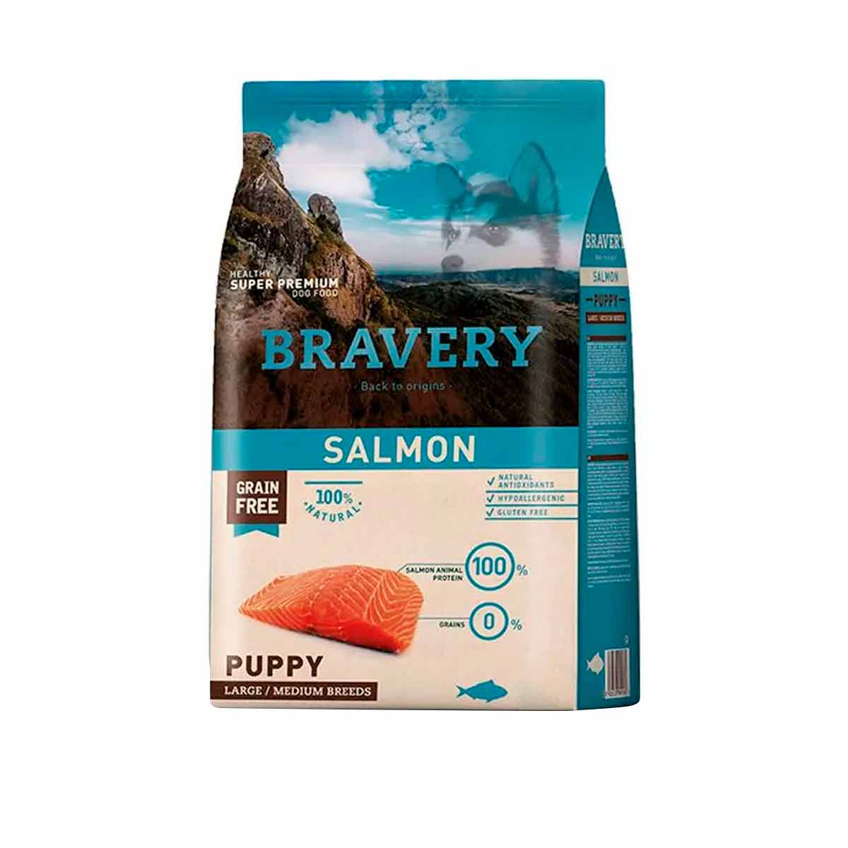Bravery Salmon Puppy Large/Medium Breeds es un alimento para cachorros de razas medianas y grandes.