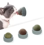Diseño práctico: Los juguetes para gatos se pueden pegar con facilidad en paredes u otras superficies con una viscosa fuerte y resistente, y no se caerán cuando tu gatito lama y juegue. Esta bola de hierba gatera tiene pegamento en la parte inferior, se puede pegar firmemente en todas partes, como la pared, el pie de la silla, el piso. La bola gira 360 grados cuando los gatos las lamen.