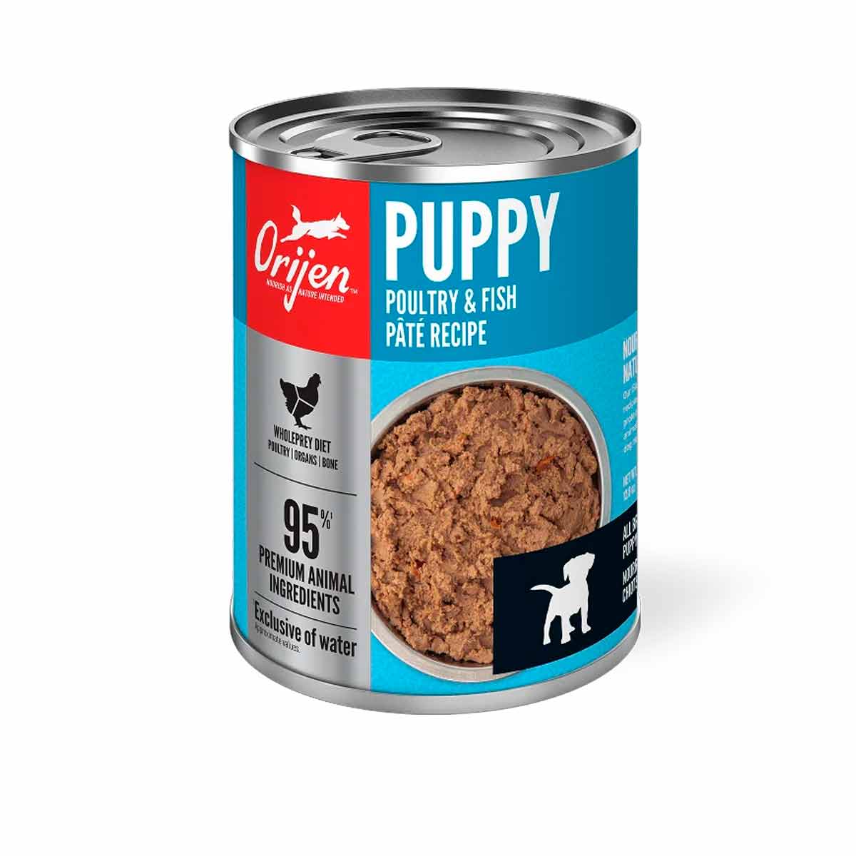 Orijen Lata Puppy es un alimento húmedo en de alta calidad diseñado específicamente para cachorros en crecimiento. Esta fórmula está compuesta por un 95% de ingredientes animales premium, incluyendo pollo, pavo y pescado frescos o crudos, proporcionando una nutrición óptima para el desarrollo de tu cachorro. La inclusión de ingredientes WholePrey, como órganos y huesos, aporta vitaminas, minerales y aminoácidos esenciales que imitan la dieta natural de los antepasados de los perros. La textura de paté y el sabor natural de los ingredientes frescos hacen que este alimento sea altamente apetecible para los cachorros. Su contenido de humedad ayuda a mantener a tu cachorro bien hidratado, apoyando su salud general.