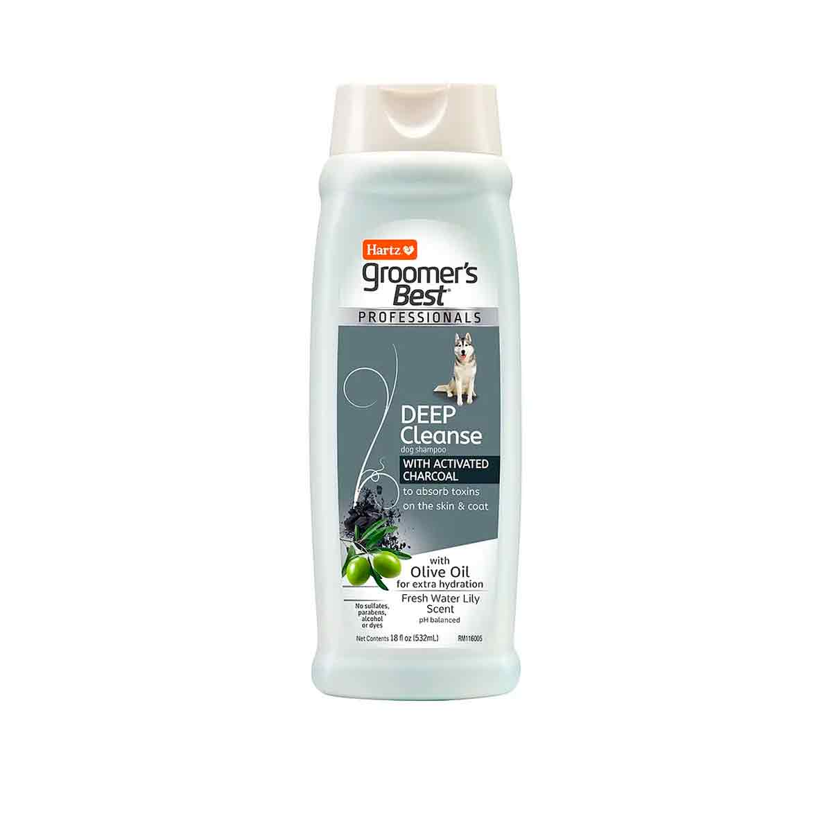 Shampoo Hartz Grommer’s Best Deep Cleanse Olive Oil limpia a fondo el pelaje de tu perro. Este suave champú contiene carbón activado que absorbe toxinas, suciedad y grasa. El aceite de oliva añadido hidrata y da brillo a la piel y el pelaje de tu perro, proporcionando una rutina de limpieza completa.